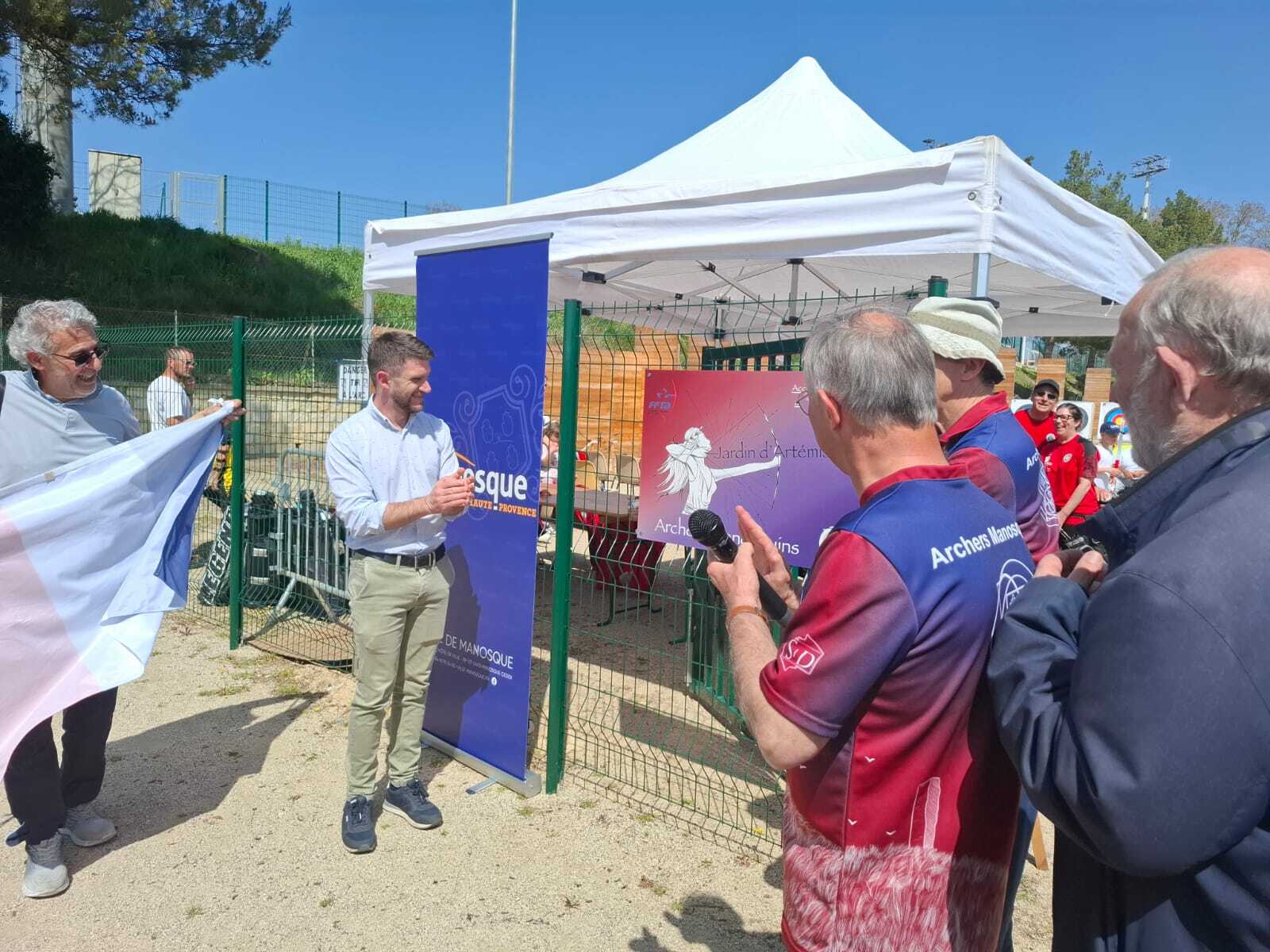 ...en présence de M. le Maire, de représentants de la municipalité et de la fédération et de nombreux archers du département. Nous avions en effet proposé au CD04 d'organiser à cette date le concours découverte du "Tir à l'Extèrieur" (discipline olympique) pour les jeunes et adultes débutants du 04-05.