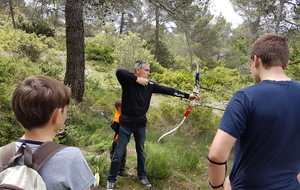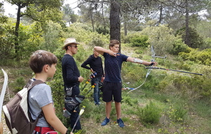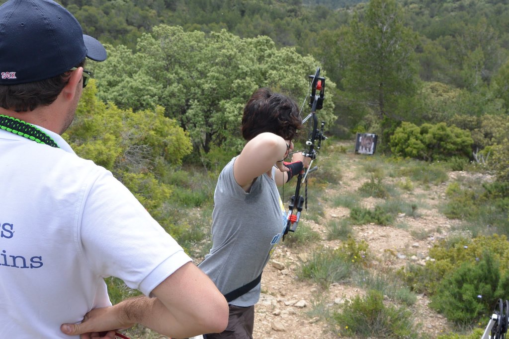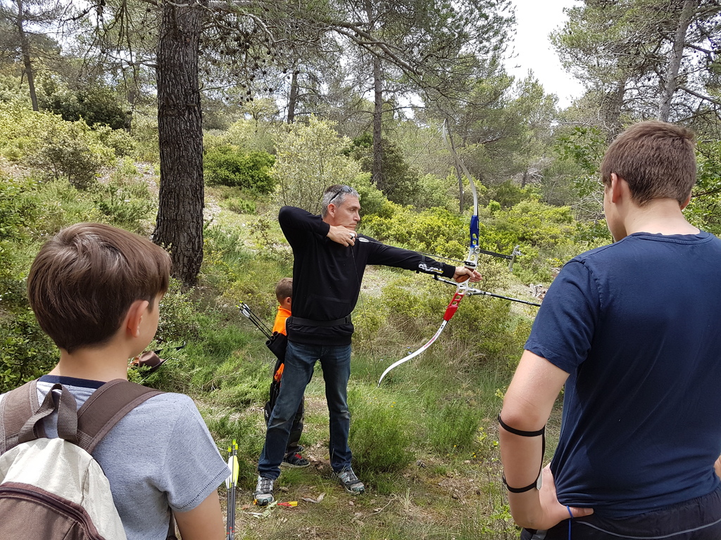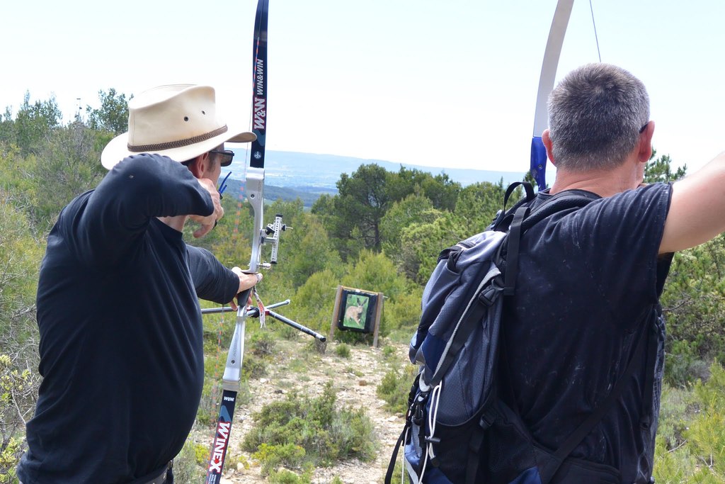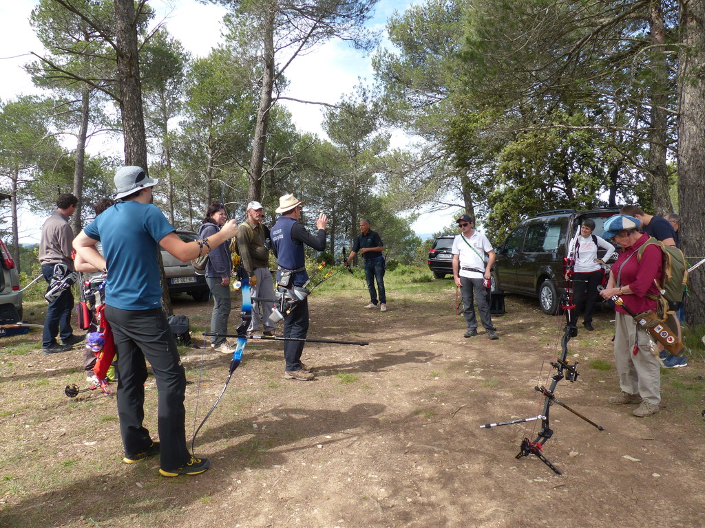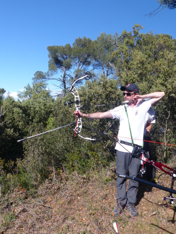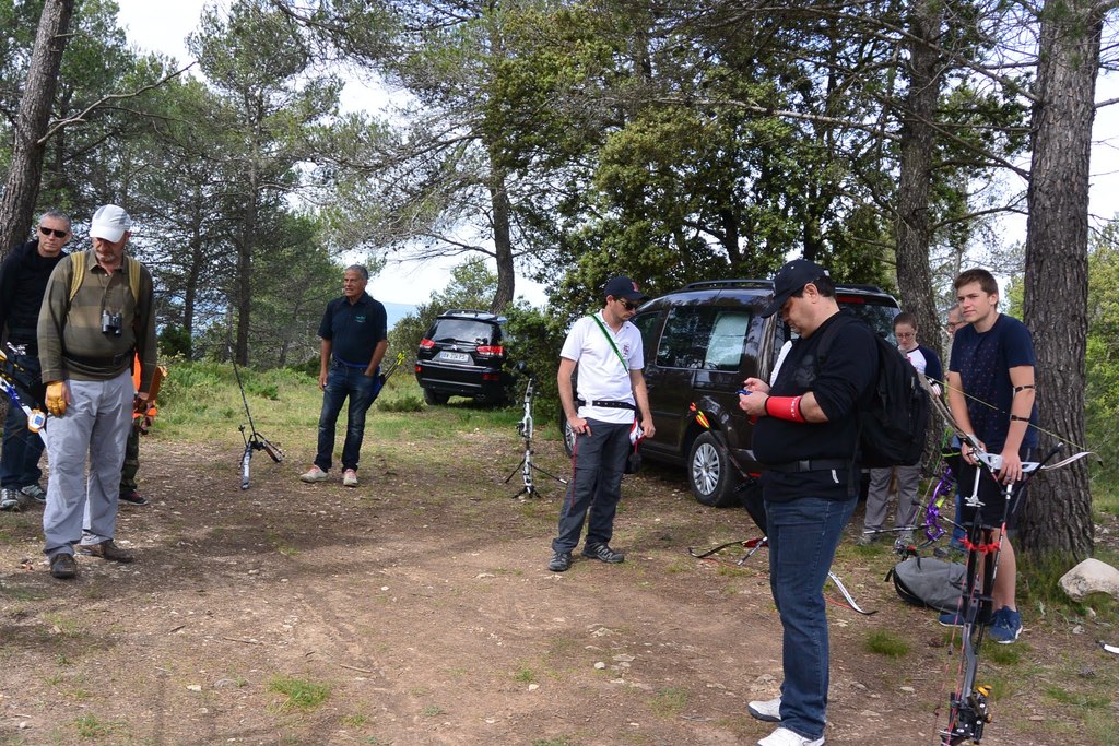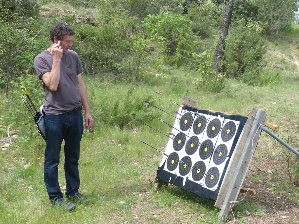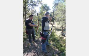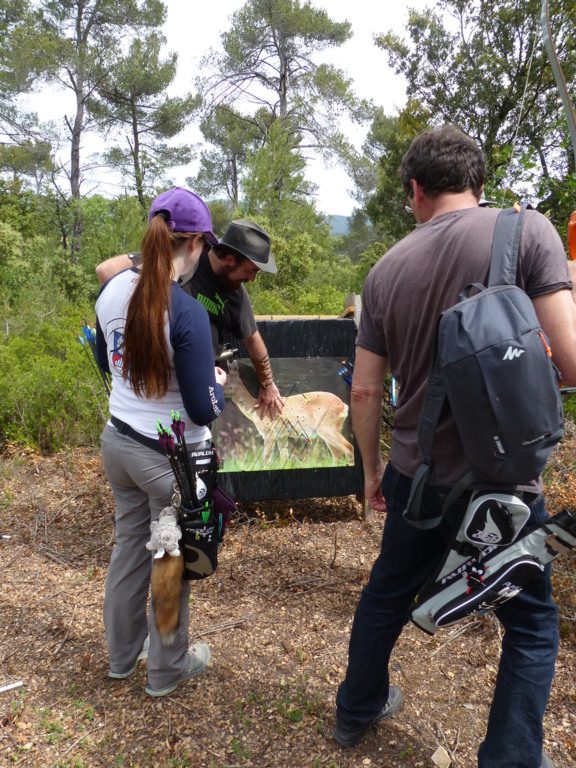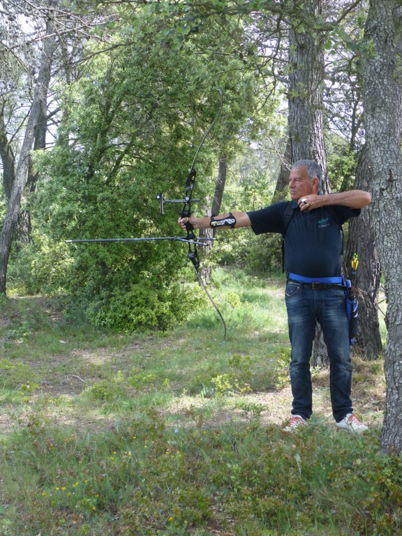 Brice et Thomas avaient blasonné les cibles et fléché l'accés la veille, nous n'avions plus qu'à monter les arcs et à tirer ! 19 archers manosquins et quelques accompagnatrices s'étaient donnés rendez-vous ce dimanche pour que les débutants découvrent le tir en parcours : Sur 15 cibles et en 4 pelotons , nous avons alterné blasons nature et campagne à des distances "raisonnables" (piquet blanc-bleu) conseillés par les habitués de ces disciplines. Un pique-nique dans la bonne humeur a permis de souffler à mi-parcours. A la fin des deux boucles prévues, plusieurs archers sont rentrés chez eux épuisés (mais ravis). Les plus accros sont repartis faire la troisième boucle : blasons campagne et piquet rouge ! Une dernière cible à 55 m vers 19h avec une lumière magnifique (et le soleil dans l'oeil ;) ... Nous espérons que chacun a apprécié cette journée et attrapé le virus du parcours !