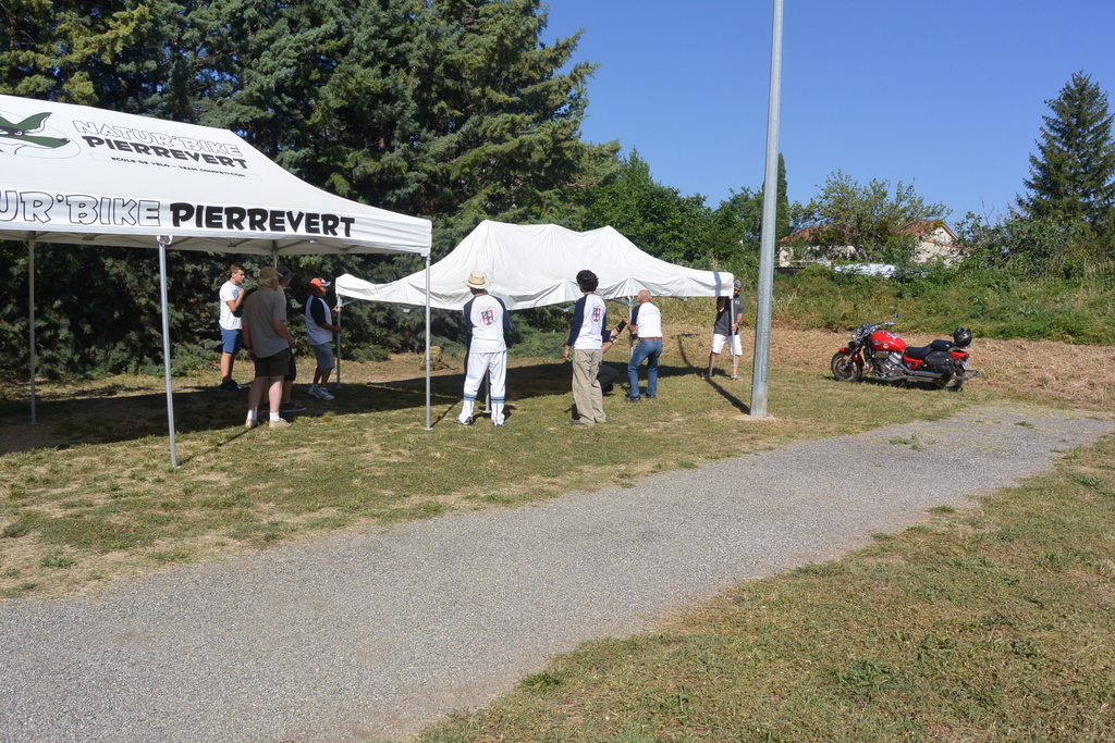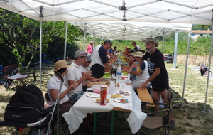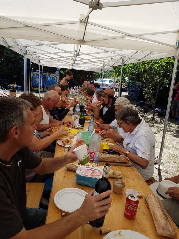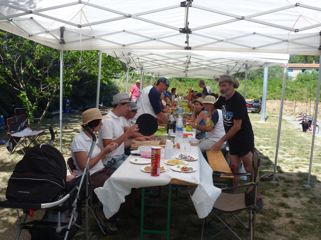 Le piquenique s’est déroulé au mieux grâce aux barnums prêtés par un club ami. Ils ont fourni une ombre bienvenue. La ville avait prêté tables et bancs.